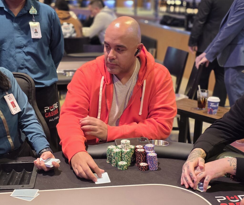 Luis Coy Bravo headed into the day amassing a large stack early. However, a crucial set against DJ Sharma launched him to the top of the chip counts. There he stayed where he found the largest stack from both Day 1 flights of 458,000. Rounding out the top three are Ryan Comely (342,000), and Colten Yamagishi (328,500).