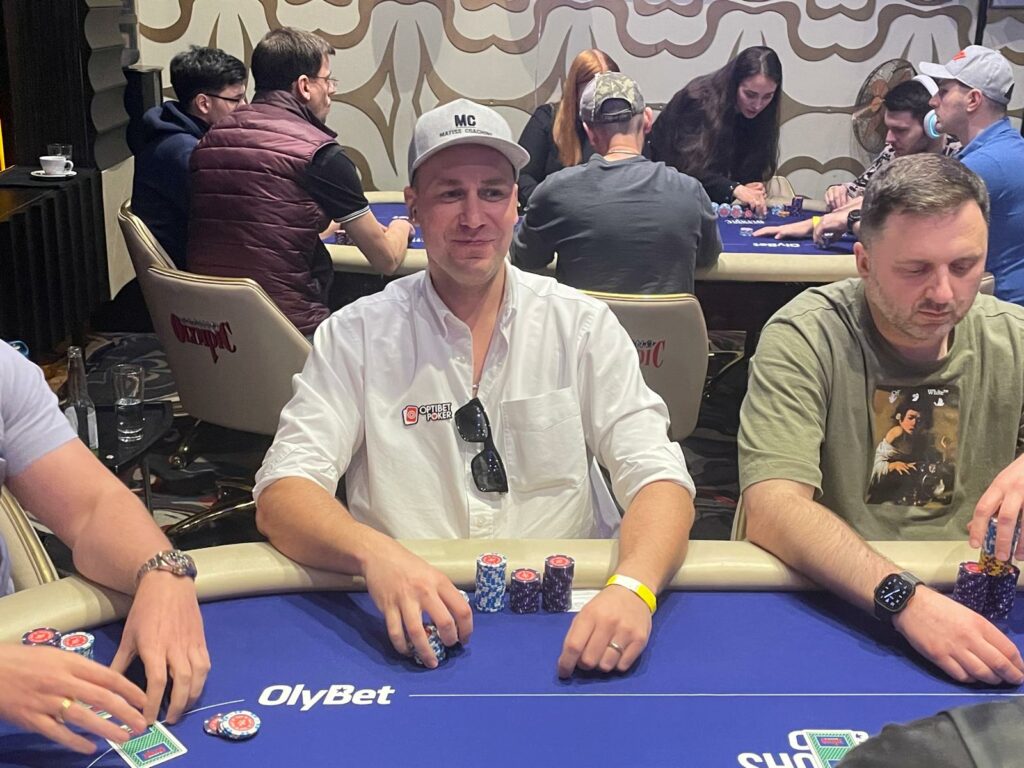 Gediminas Guzelis was in the small blind, and he cold four-bet jammed for 350,000, forcing Petrovs to get out of the way.