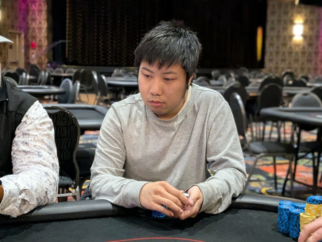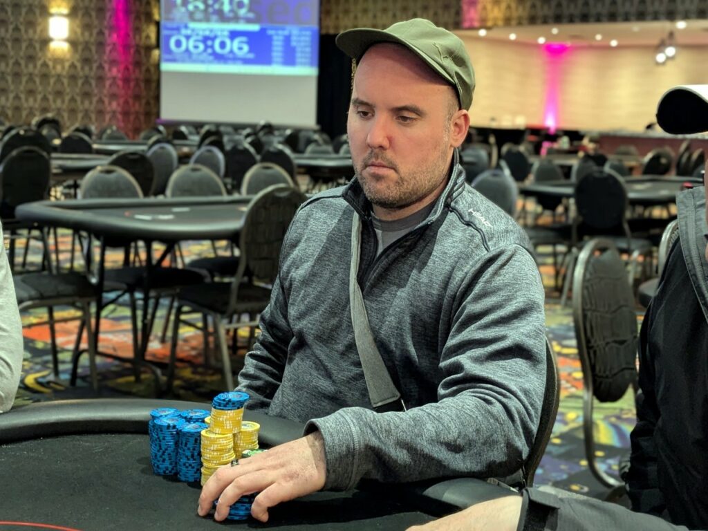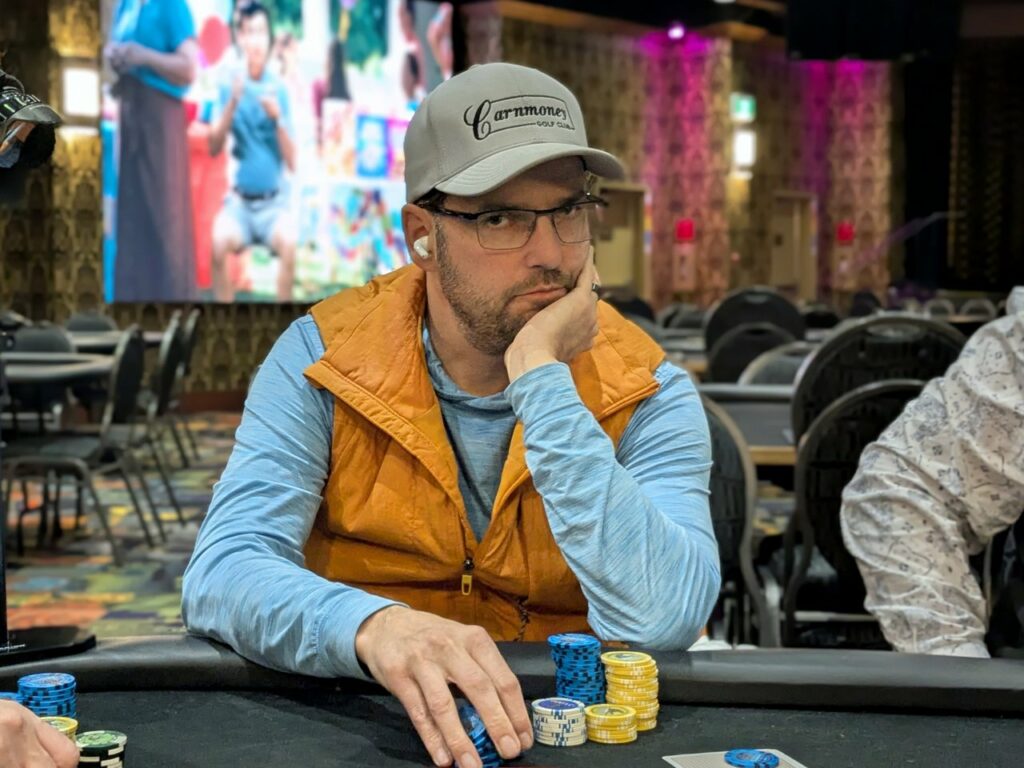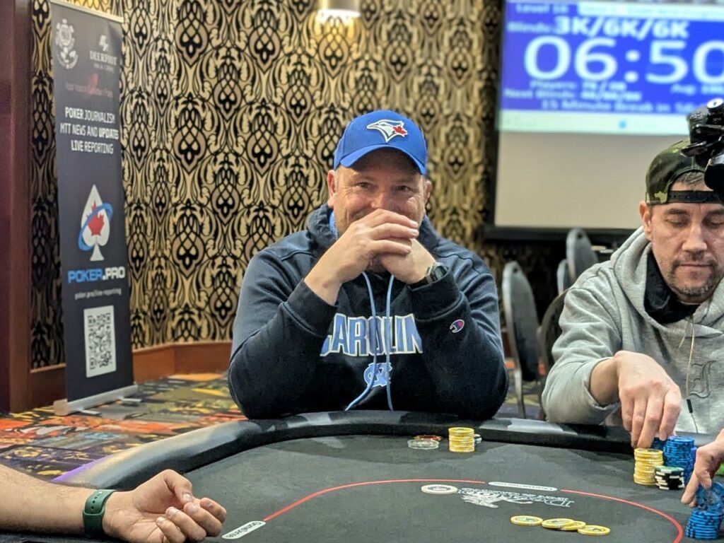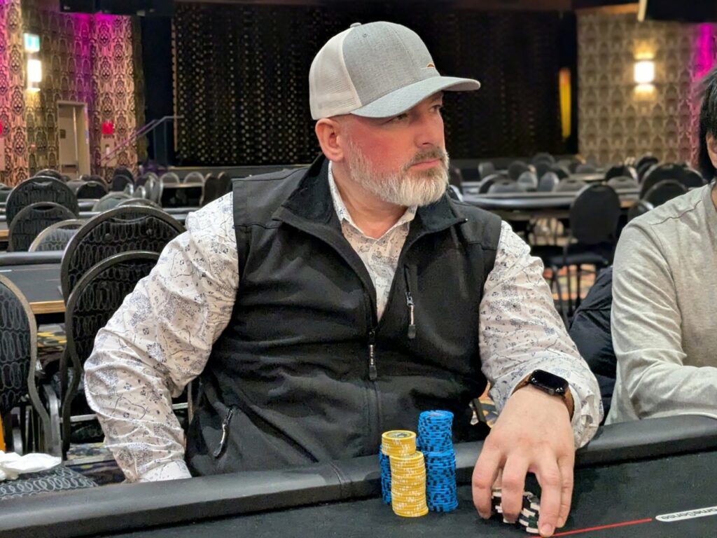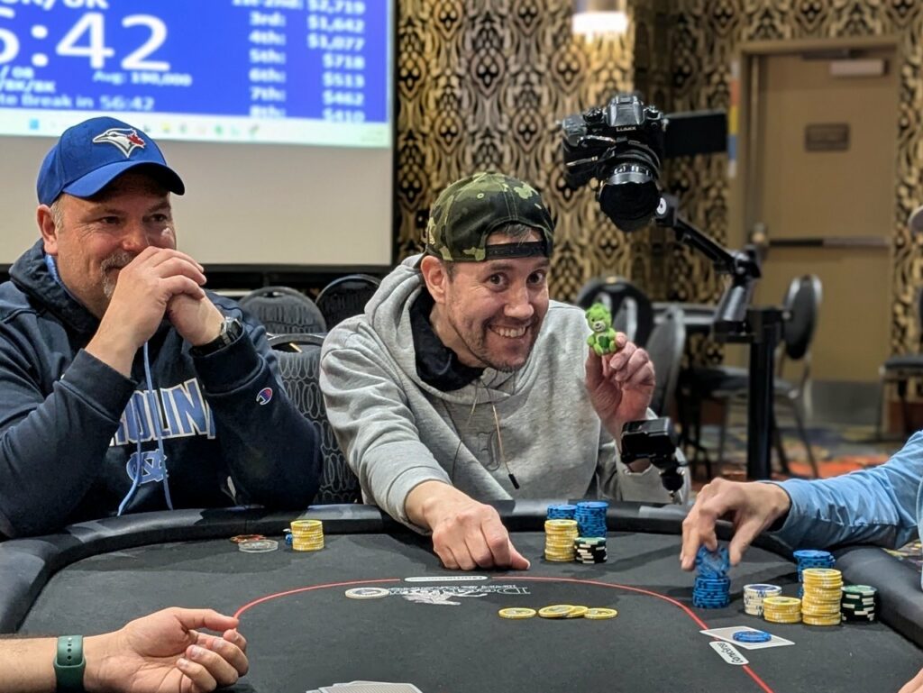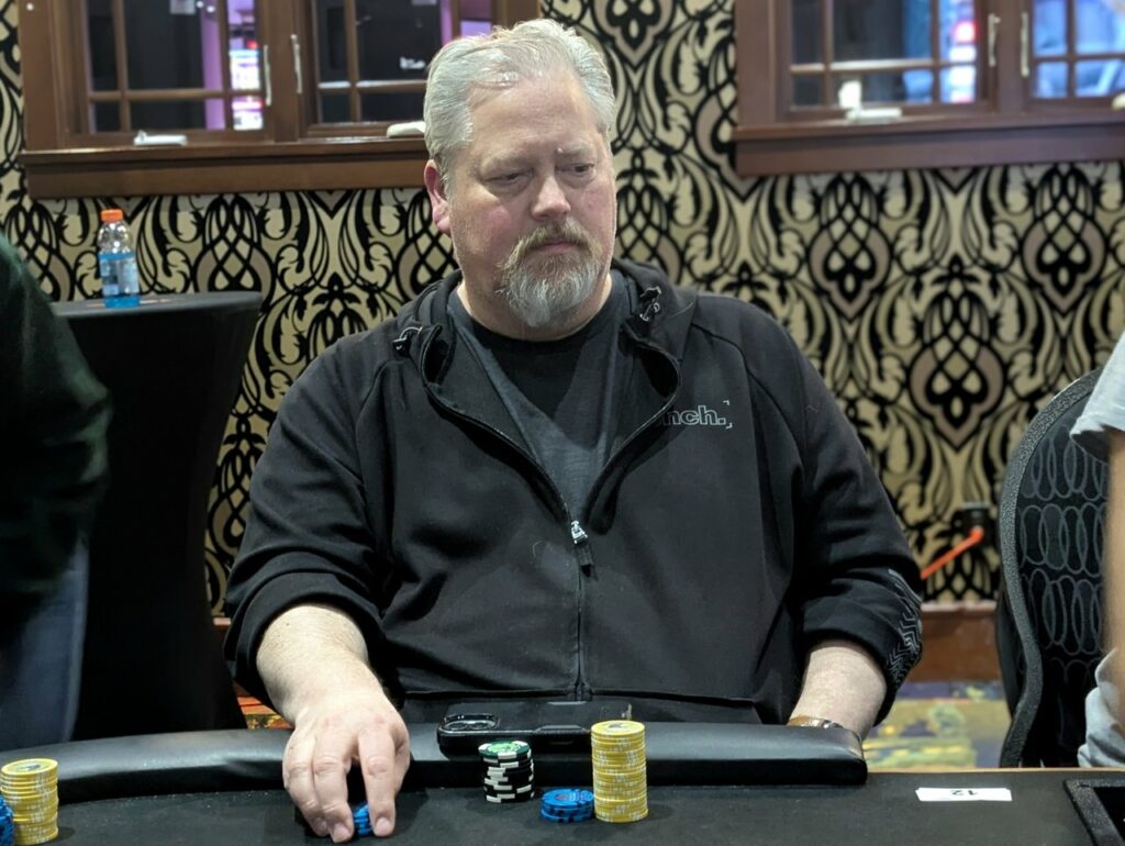 Stefan Maloney was the first player out in the money tonight. He got it in with pocket sevens, but had to fade two sets of overcards, with Todd Oakley on ace-king, and Alexandre Fortin on queen-ten. Fortin flopped a ten, while Oakley turned an ace for the win. He covered Maloney, who took 8th place for $410 plus $550 in bounties, and got a full double from Fortin.