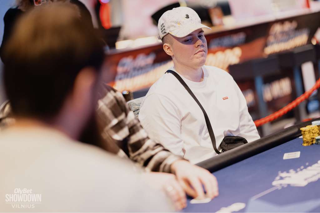 Evaldas Narmontas committed 200,000 of his 340,000 stack to a pre-flop raise from the Cut-off. Action folded to chip leader Jarmo Luokkala in the Small Blind, who put in a large chunk of white 100,000 chips to announce a raise. When it came back to Narmontas, he made the call for his tournament life.