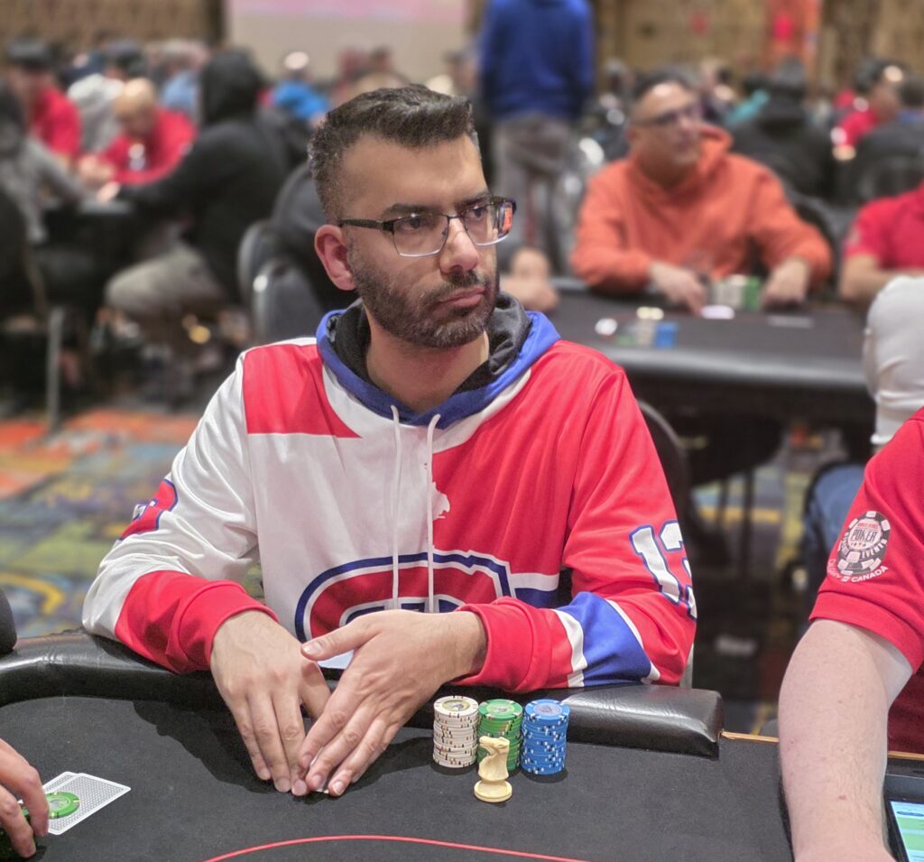 Nizar Tajdin moved all in for 1,225,000, and Senthuran Vijayaratnam made the call. Both players revealed their holdings.