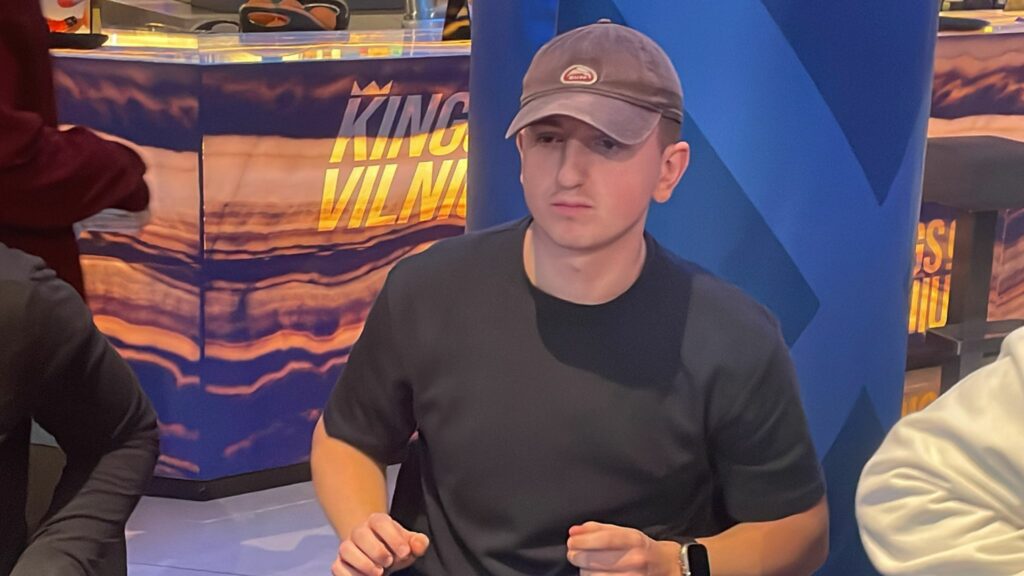 With around 130,000 in the middle on a completed board of 9♠5♠3♠J♣J♥, Martynas Mockevicius had 28,000 in front of him, and the all-in triangle was in front of Lukas Peteska with the covering stack.