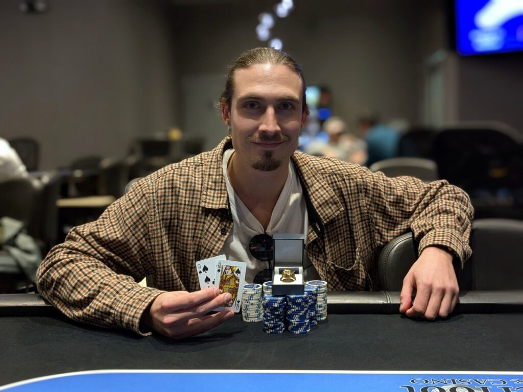 That left the final three fairly even, and they battled for a bit before Craig Caldwell got it in for essentially a flip with his ace-five up against the king-seven for Quin Kannekens. Kannekens flopped his king, and Caldwell was out in 3rd.