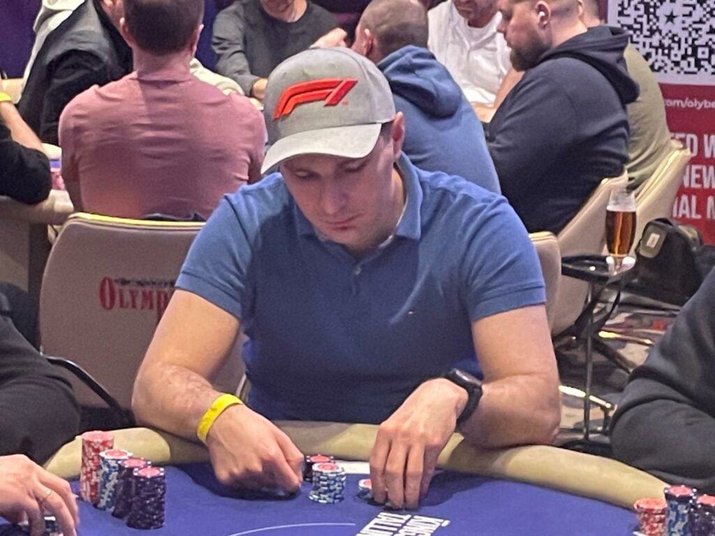 Michael Ibba moved all in from early position for 42,000, and Kristaps Deksnis took a peek at his cards on the button before promptly moving his 27,000 stack into the middle.