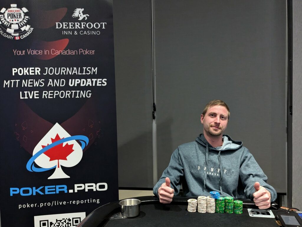 Crema was second with about half that, and that’s pretty much how it stayed, position-wise, until they got to three-handed, Brouillard never gave up the chip lead, but with play three-ways, second place was swapping back and forth between Denis Mucjin and Crema. Mucjin eventually went down to Crema in a brutal cooler that saw his pocket kings cracked by Crema’s six-four with two pair.
