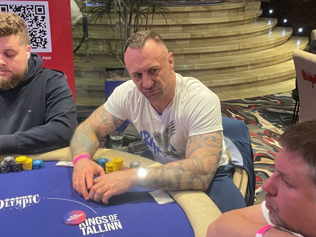 Viktors Caikins was in the big blind, and he took quite a bit of time for thought, before cold-calling. Kovalovs got out of the way.