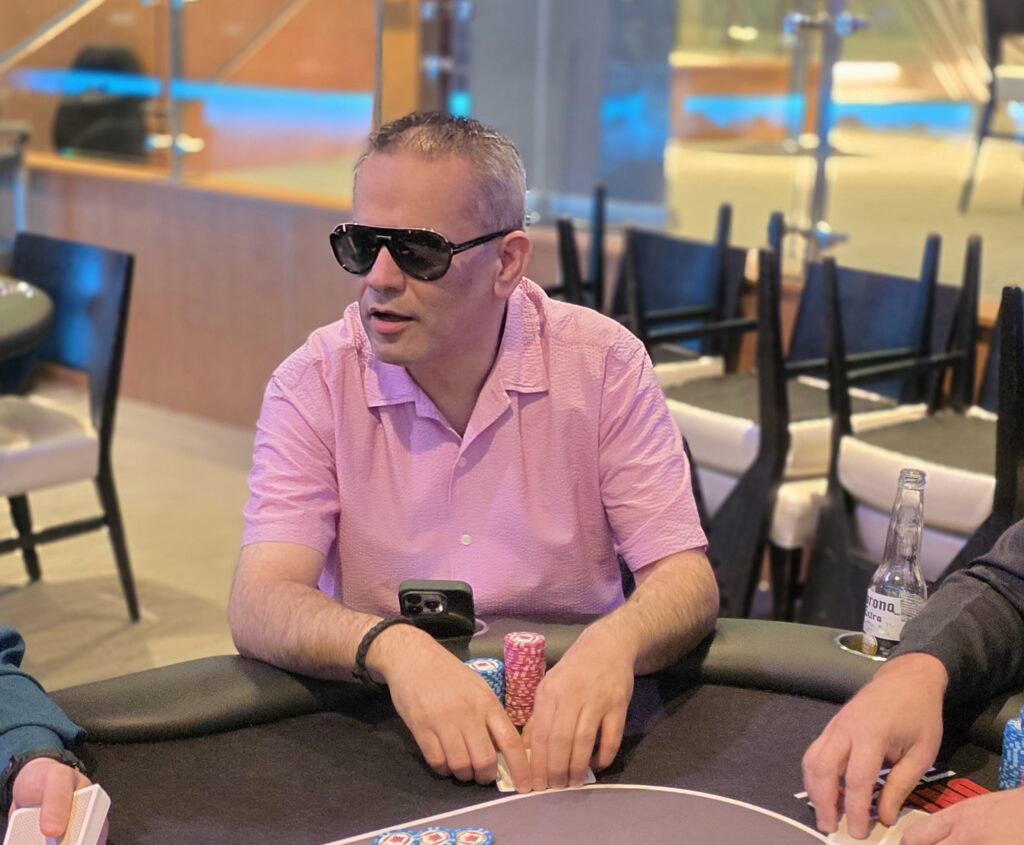 The flop came A♣K♠A♠, and Stewart led out for 4,000. Sharma raised to 12,500, and Stewart found the call.