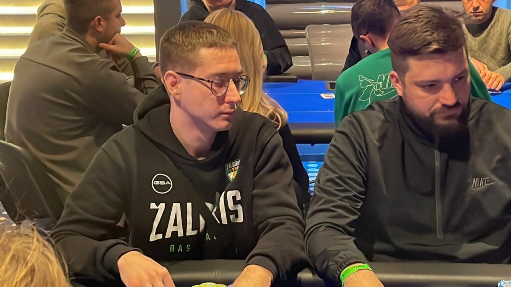 Kaspars Mallons raised from the small blind to 3,500, and defending champion Aurimas Stanevicius defended the big blind.