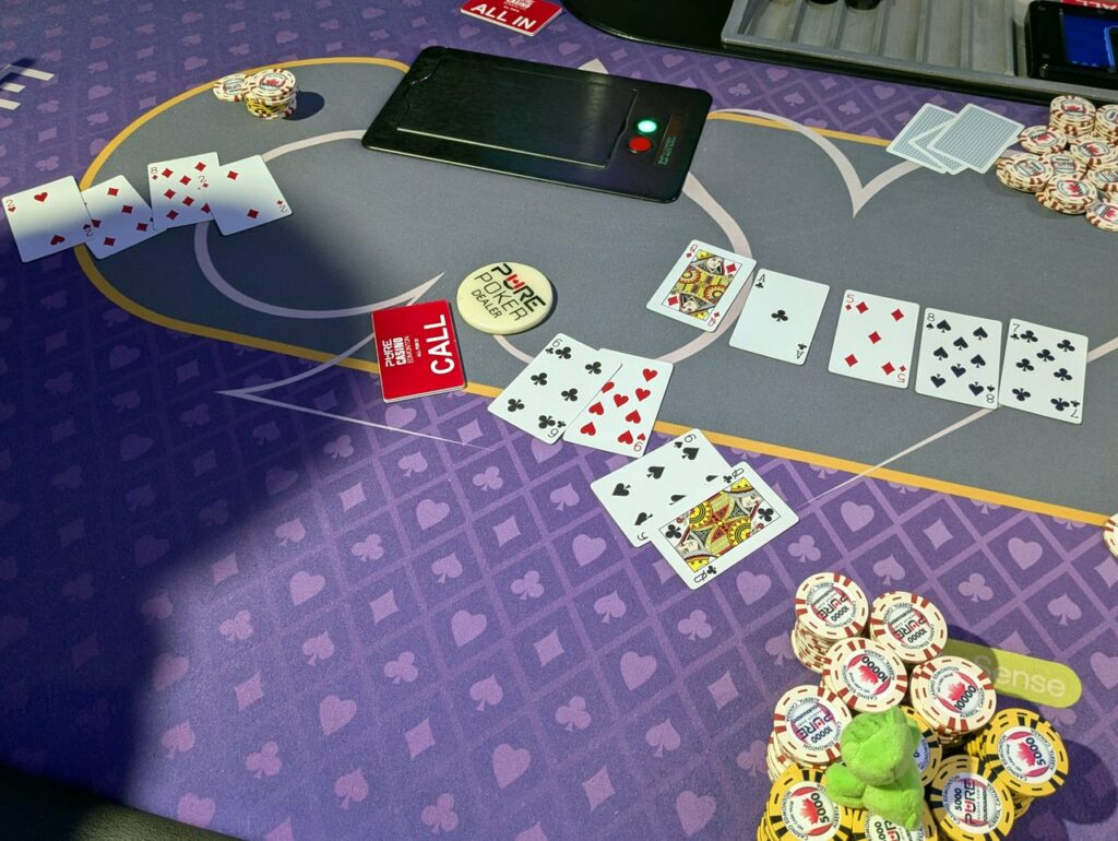 By the time they hit Level 28, the average stack was less than 10 big blinds going into a PLO round. Maloney pretty much had the lead all the way through, but just couldn’t drive the final nail.
