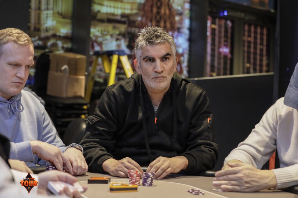 Lofti Boughanmi jammed from the button for 630,000, and was called by Daniel Hunt in the small blind, before Sebastian Constable three-bet jammed from the big blind with the covering stack. Hunt took a time bank before folding.