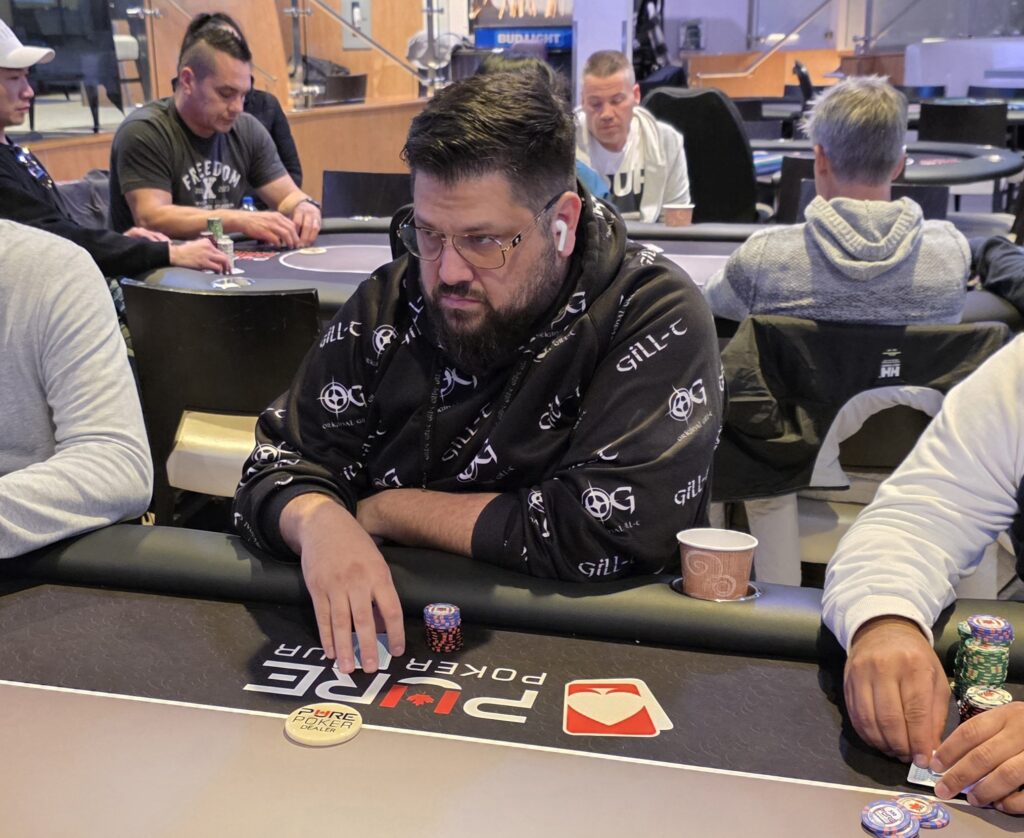 Kris Steinbach raised to 10,000 from middle position, and Cody Trottier moved all in for 32,000. Steinbach made the call, and both players revealed their holdings.