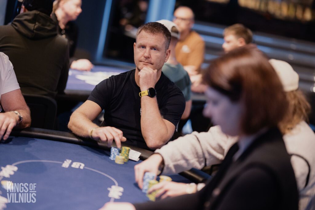 Vidar Assersen was all-in for 90,000 from the big blind after calling off a jam from Liutauras Armanavicius from the small blind.