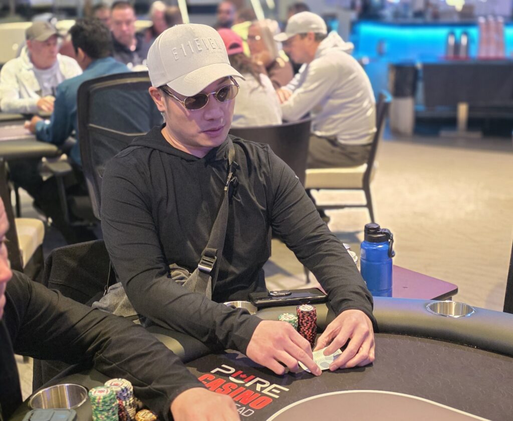 The turn was the 2♥, and Vince Lam led out for 35,000. Nu Teliani made the call.