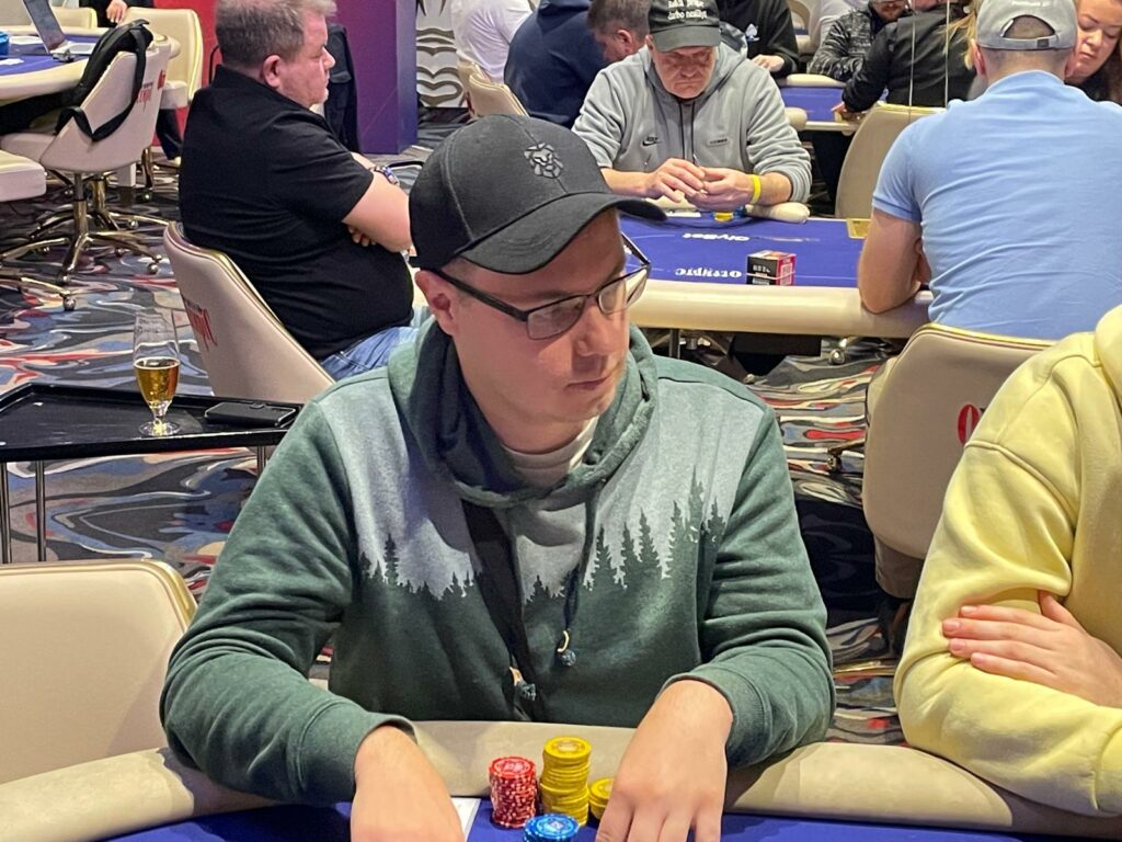 Burneikis needed some help, but he bricked the 8♦7♣2♠10♥Q♠ runout.