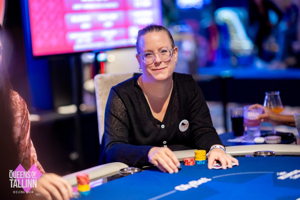 The first-ever female WSOP Circuit Tallinn Main Event champion check-called a 3,700 bet from Majumder on the 10♦8♣5♦ flop. She checked again on the 4♣ turn, and Majumder continued for 6,700. After some consideration, Westerlund forced her German opponent all in for roughly 30,000 in total. Majumder took his time before, ultimately, making the call.