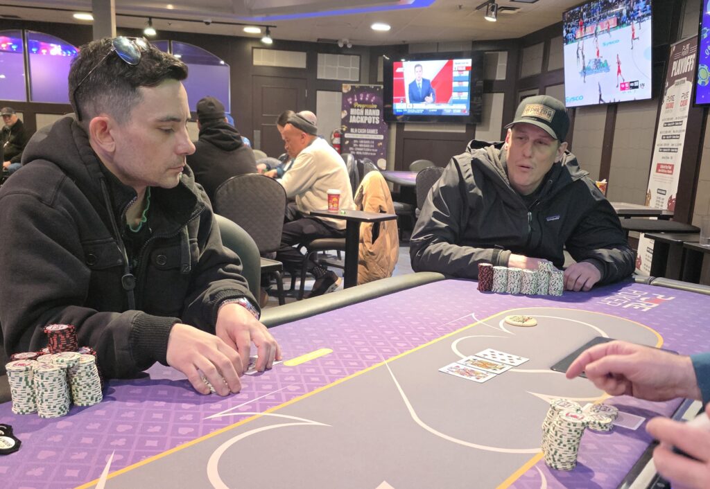 Early in the day Steve Chung found a double elimination to spearhead his final table run. Fong also collected a couple early eliminations sitting as the second largest stack of 119,300 by the first break. Phong continued his success with the leading stack, as play neared the money. While in hand for hand play, both tables saw an elimination to bring the remaining field into the money. Matthew Ouellette and Shabab Khan, the two players to bubble, split the min-cash of $665 for $333 each.