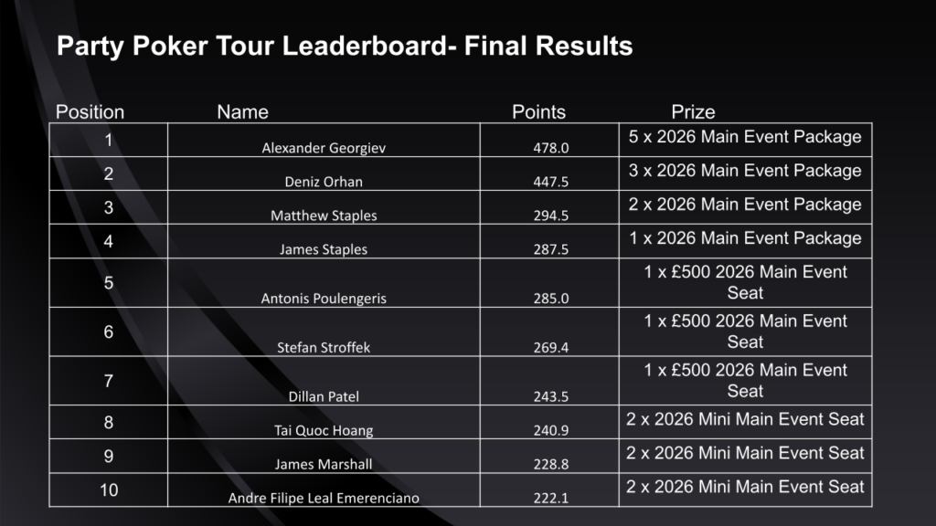 That concludes poker.pro‘s coverage of the 2025 PartyPoker Tour London – be sure to check out the 2026 schedule!