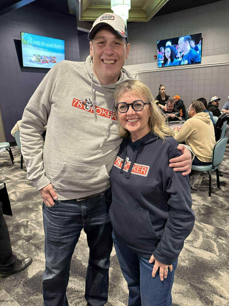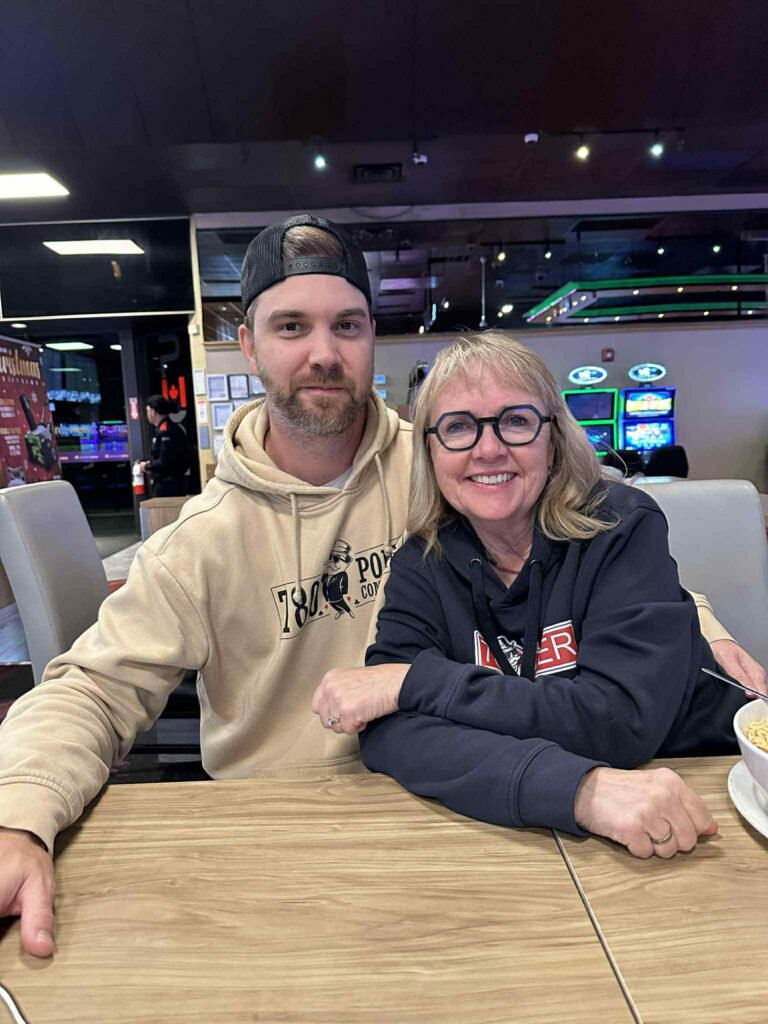 Ryan Cairns, who recently won a PPT Main Event, was Snides’ roommate and posed with his mother away from the action. Weston Pring was a close colleague of Ryan’s with 780 Poker and the Alberta Poker Index in the last few years, and also took time out from the game to get a picture alongside Leslie Snyder.