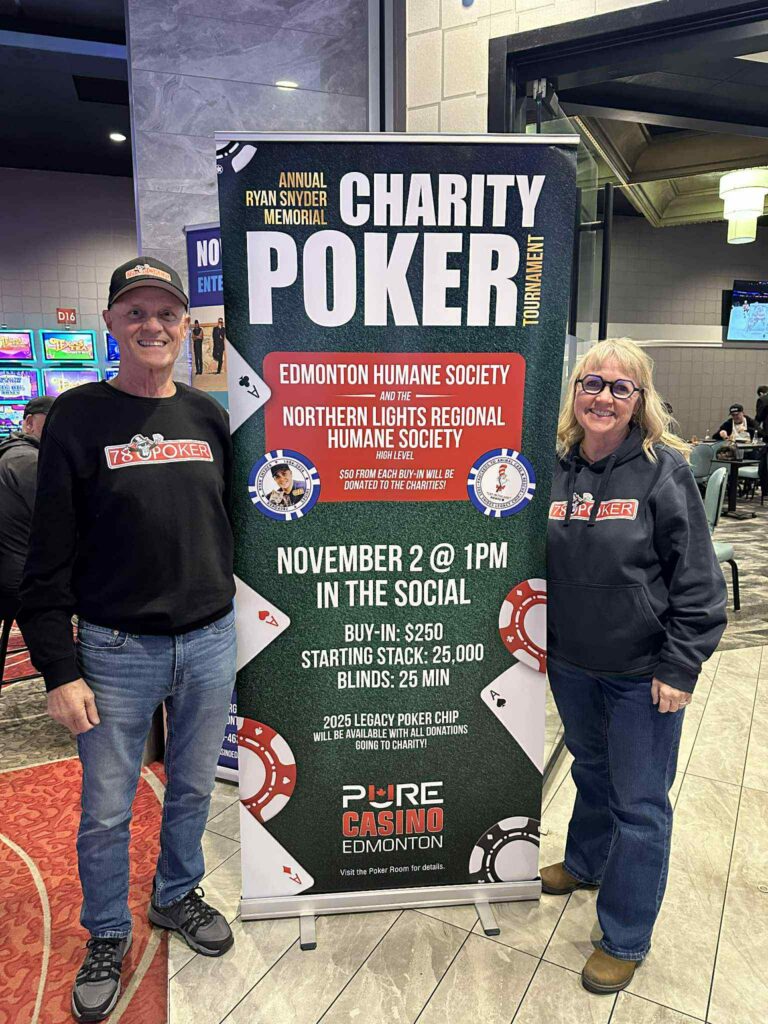 With $50 from each buy-in going directly to the Edmonton Humane Society and the Northern Lights Regional Humane Society, the game raised more than $6k for animal rescue in north-central Alberta. The game drew 122 entries, with local regular Mishel Nguyen taking down the win.