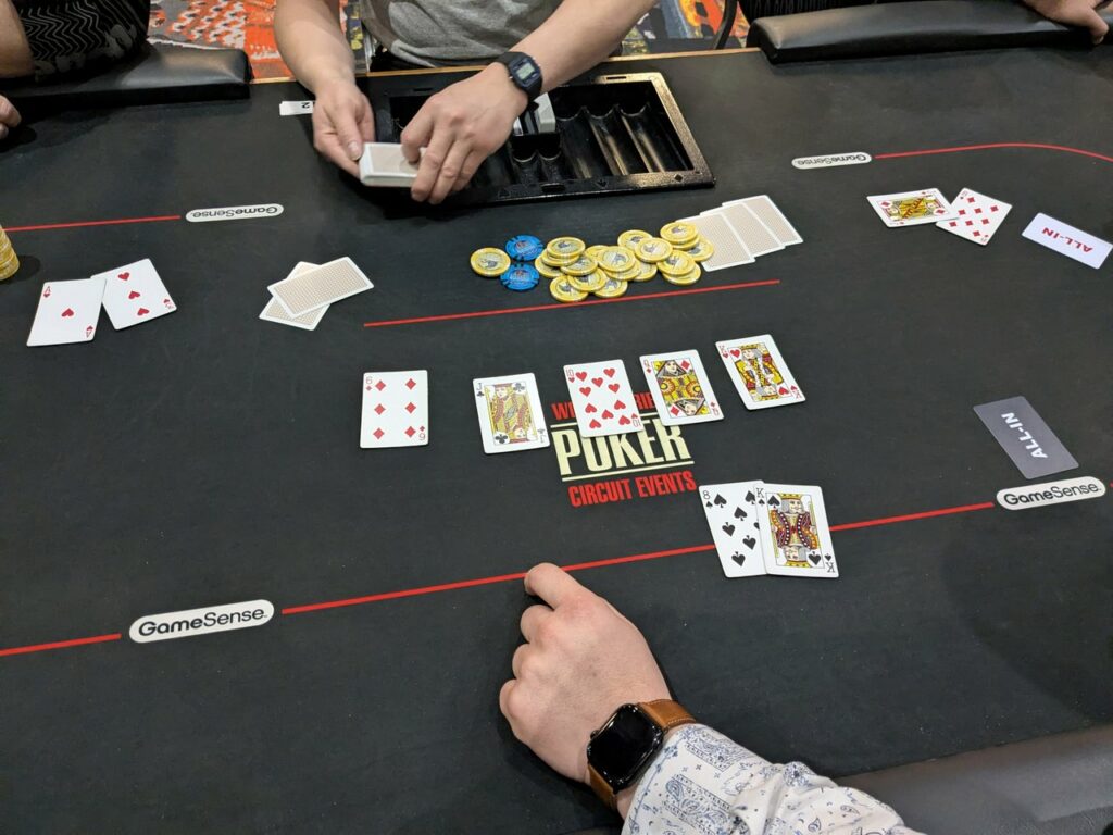 That wasn’t quite how it all worked out on Friday night, however. Todd Oakley was the table captain for much of the final table play, but as the numbers dwindled, Wayne Hoffert surged into the lead after a huge three-way all-in that saw Hoffert scoop a big pot to take the lead and bring the game three ways.