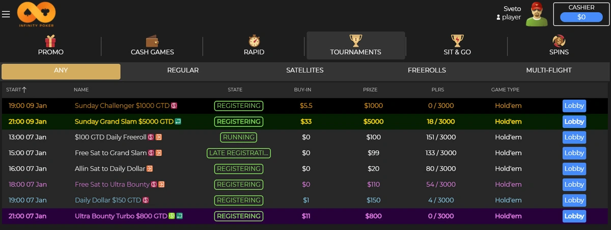 Registration is really easy. We feel this is one of the main reasons, Infinity Poker became popular that fast.