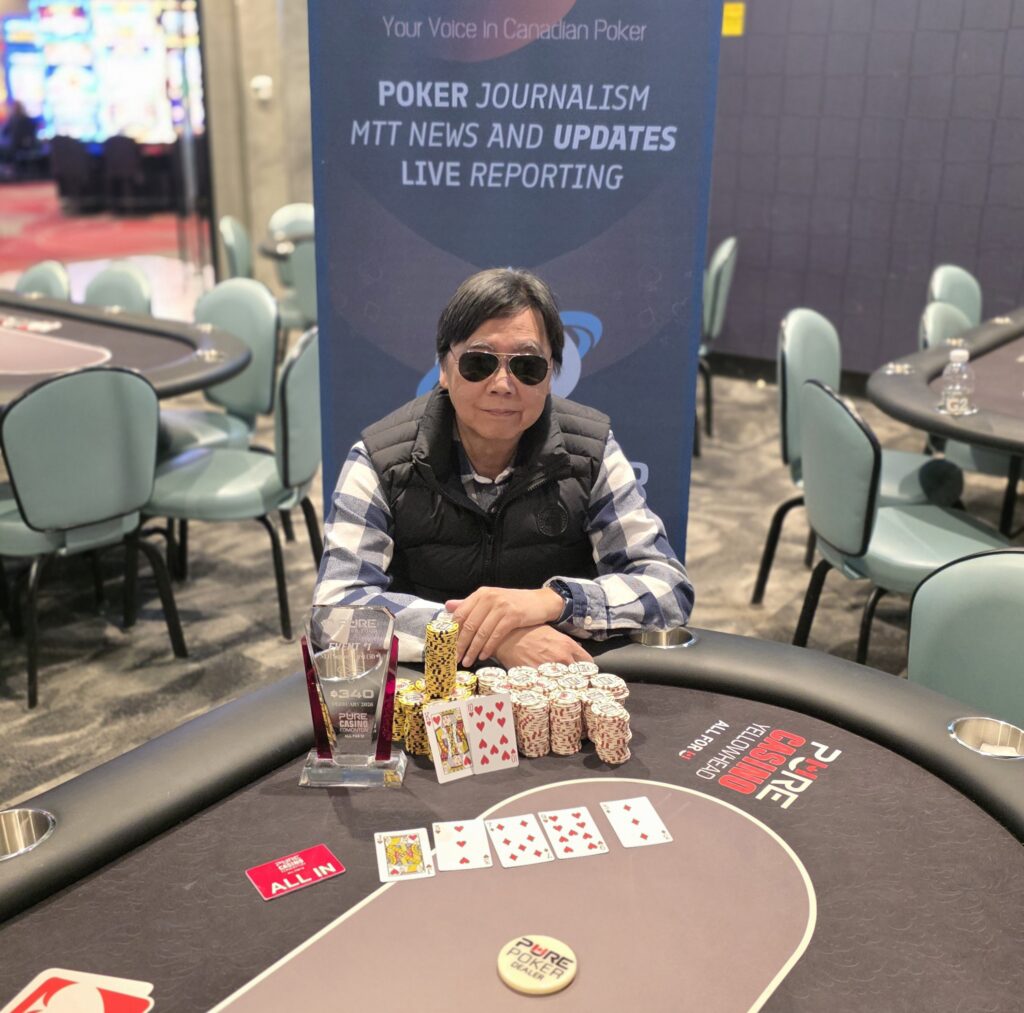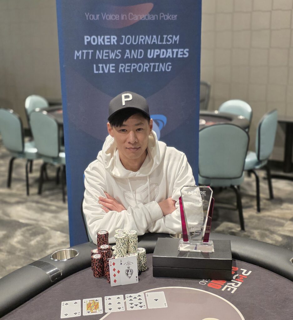 He scored a huge double against Mill, then sent Varan Sidhu home for 3rd place. That put Lee & Mill heads up, with Lee finishing the job just before 2 AM. This was Lee’s 11th live win, and 4th PPT trophy.