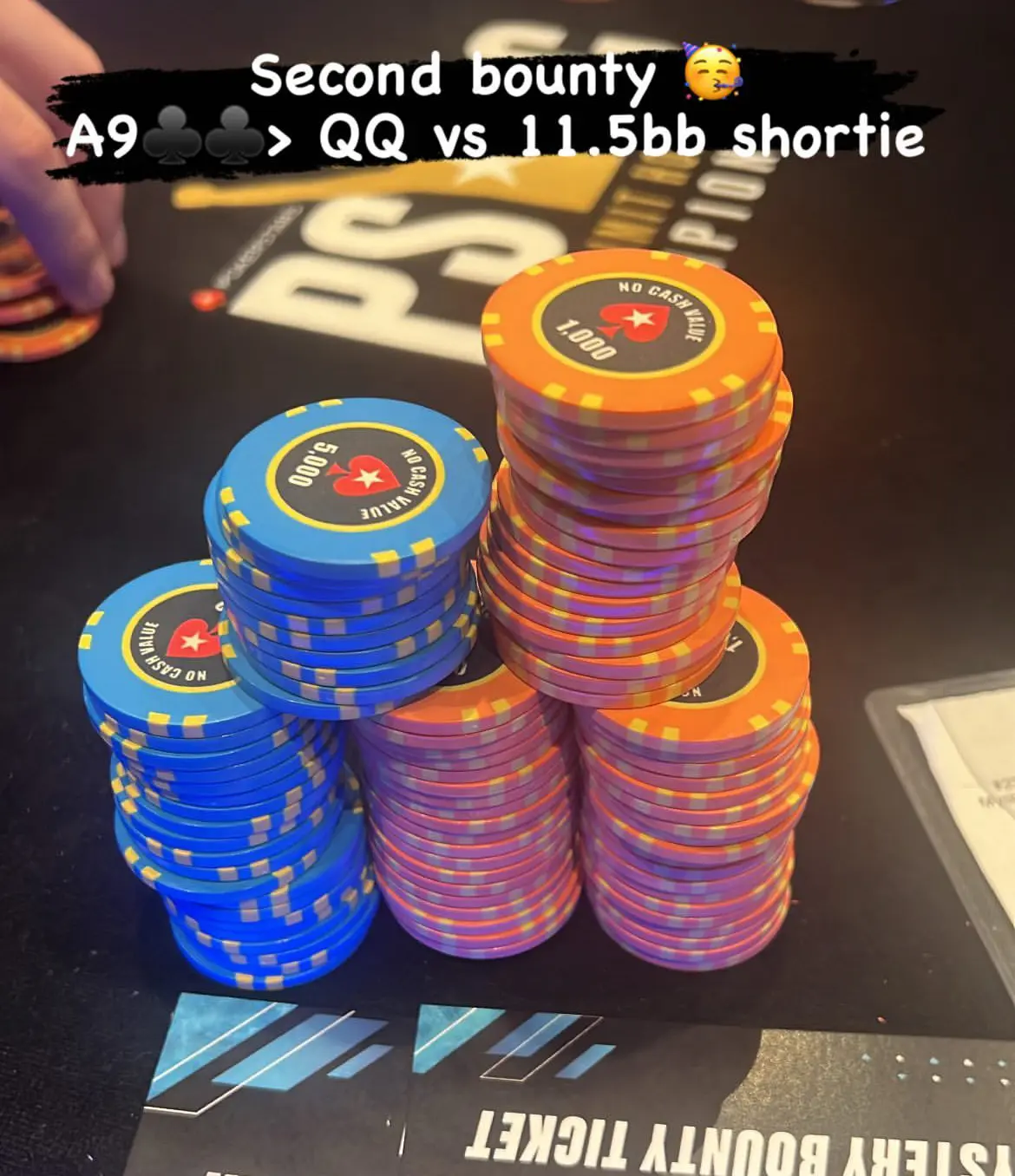 At this point it was time to cash in the two bounties he got during the day two. No luck here as well as both mystery bounties were $1,000 ones for a total of $5,500 money prize. Congrats to Stewart and there will be lots of opportunities to upgrade his first 2023 PCA tournament cash.