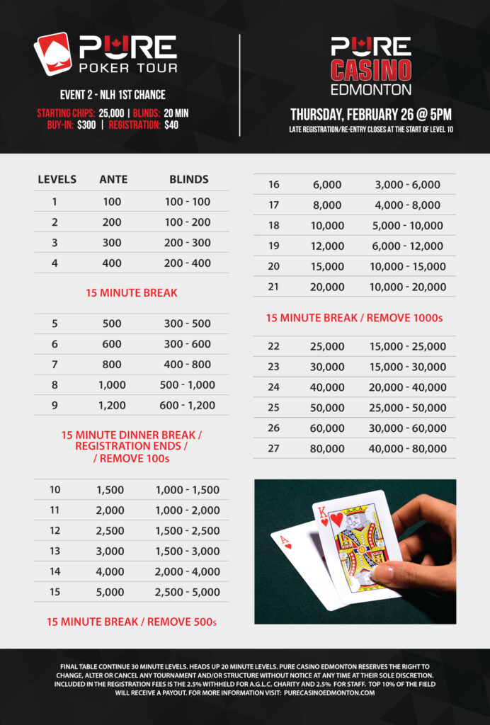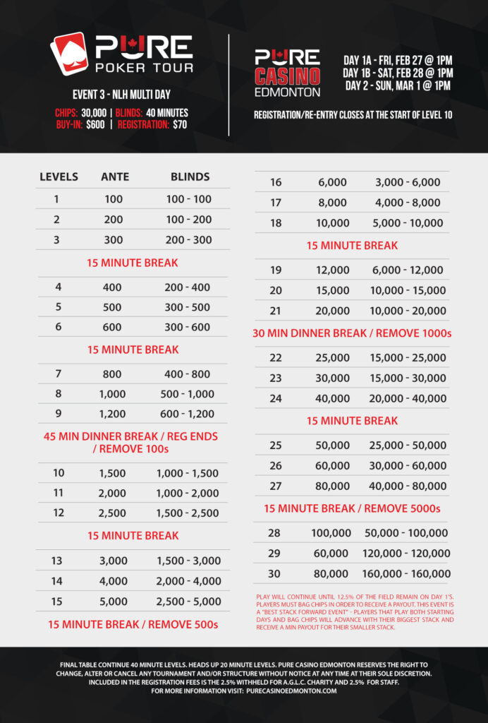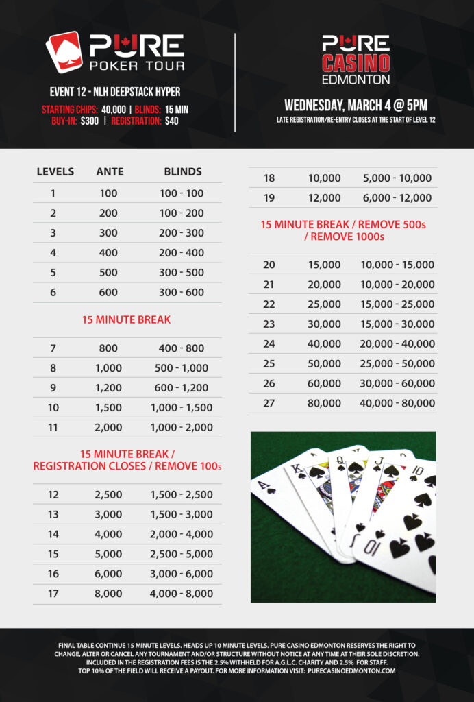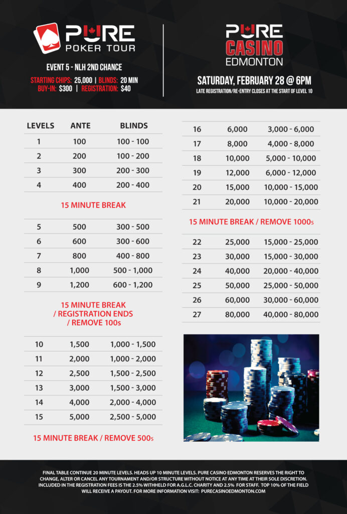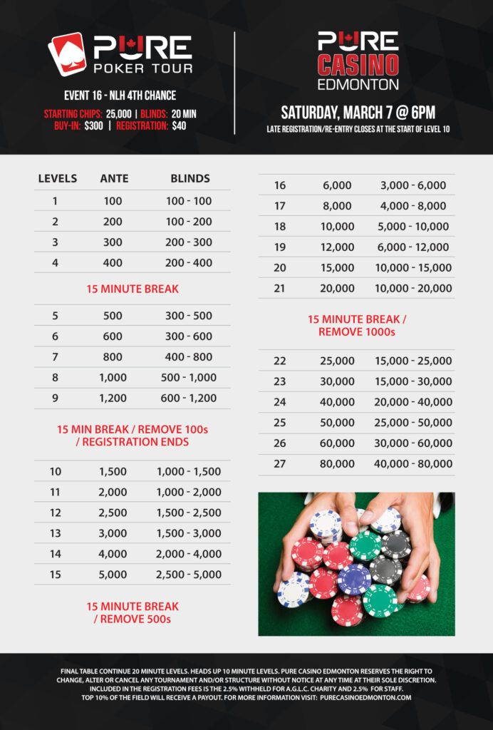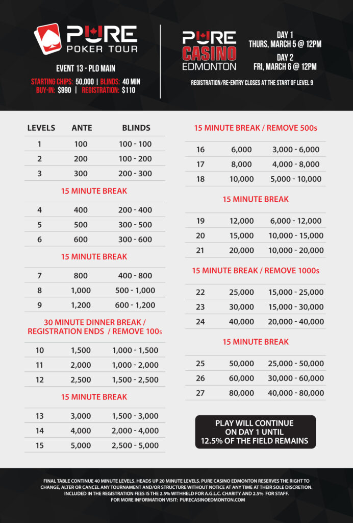 Points earned during PPT series also count towards the larger Player of the Year race. That race has $10k in value up top, and includes points earned in all five PPT series, as well as monthly Deepstack games at the various Pure properties around Alberta.