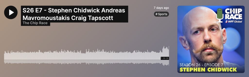 The final episode of Season 26 of The Chip Race has aired and is on course to being one of the most listened-to episodes of the award winning poker podcast.