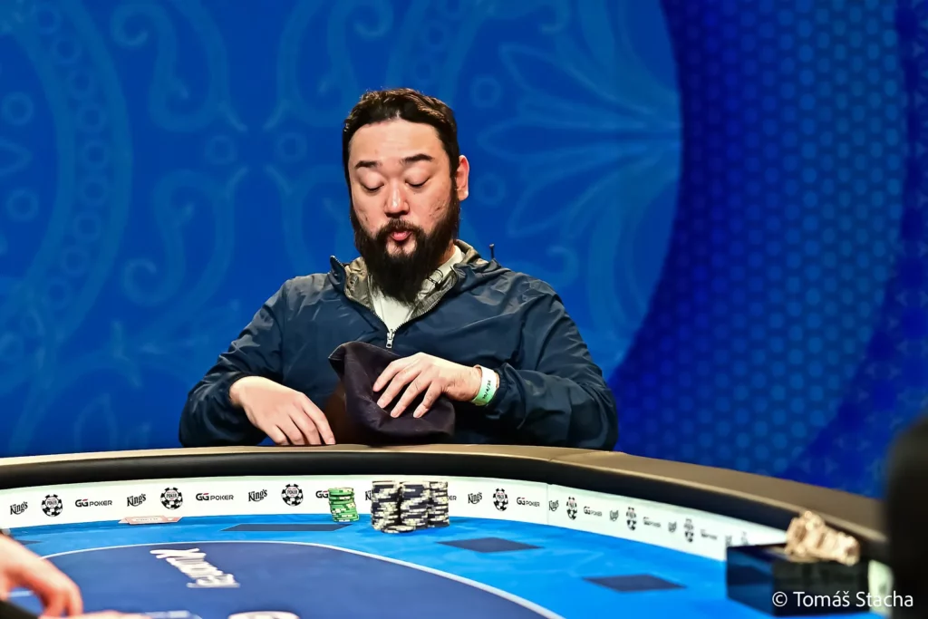 Kudzmanas now had a commanding chip lead. The same couldn’t be said about Antonio Garcia. Judging by The Hendon Mob, he, too, was one of the more inexperienced live players at the table with “only” €9,415 in total live earnings going into the tournament. Action folded to Garcia in the Cut-off, who moved all in for 6,400,000 – his last six and a half Big Blinds – with A♦3♠. Akihiro Konishi made the call on the Button with A♠Q♦; Garcia was in rough shape, and things didn’t exactly look better on the Q♣6♣7♦ flop. The Q♥J♣ runout didn’t produce a miracle for Garcia, who bid farewell in fifth place for €425,000.